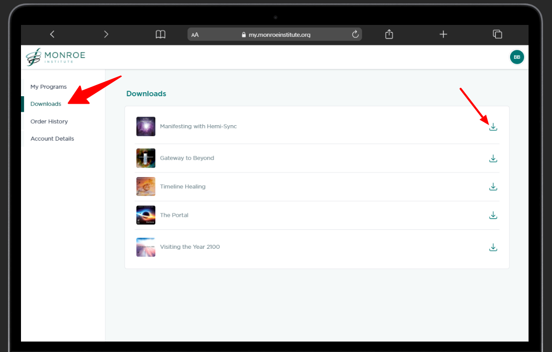 1. Please log in to https://my.monroeinstitute.org using your registered email address and password.